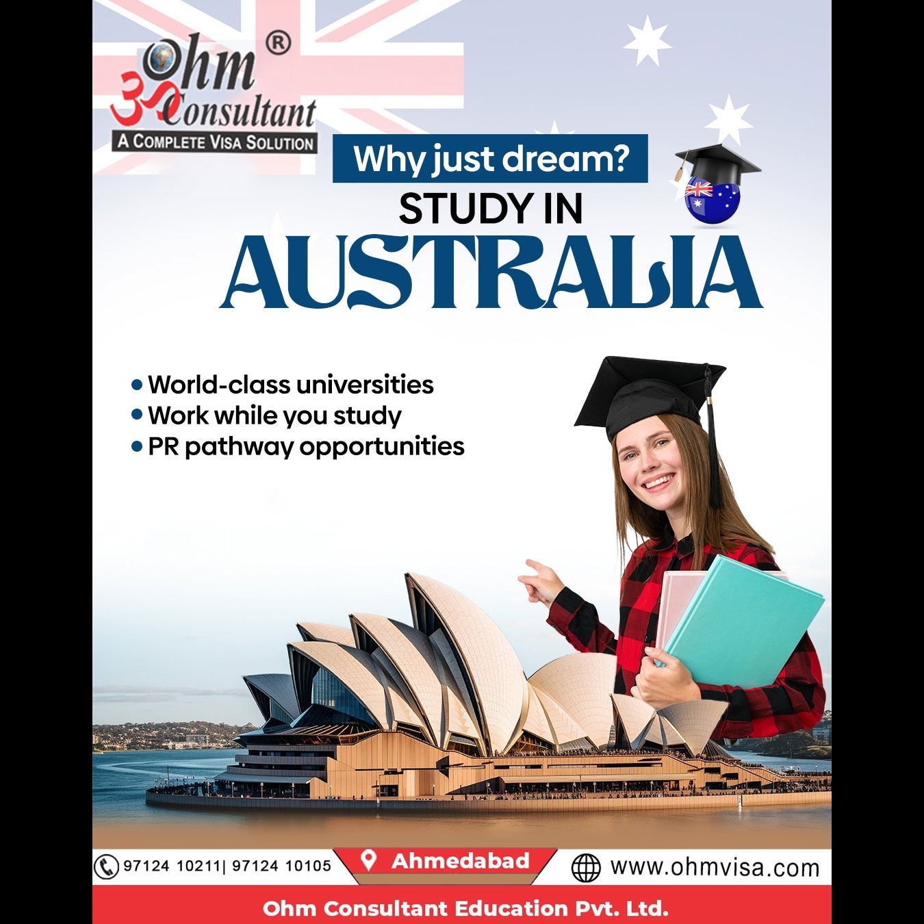 Study in Australia with OHM Consultant Turn your dreams into reality with world-class education in Australia! At OHM Consultant, we provide expert guidance to help you secure your Australian Student Visa and get admission into top-ranked universities. ✅ Work while you study – Gain valuable international experience. ✅ PR Pathway – Explore opportunities for permanent residency after graduation. ✅ Professional Guidance – From application to visa approval, we’re with you every step of the way.