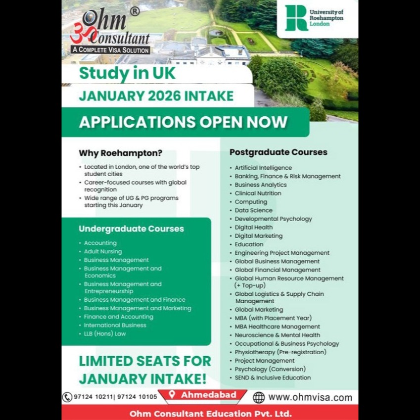 Study in UK. Admissions are open for January 2026 intake. Study in University of Roehampton, London. Hurry, Limited seats for January 2026 intake.