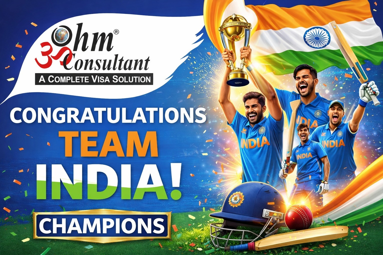 Congratulations Team India! ๐ฎ๐ณ๐ A proud moment for every Indian as Team India rises to glory and becomes Champions! Your dedication, passion, and unstoppable spirit have made the entire nation celebrate this historic victory. At Ohm Consultant โ A Complete Visa Solution, we salute the champions who inspire millions to dream big and achieve greatness. Just like our champions make India proud on the global stage, we help students achieve their dreams of studying abroad and making India proud worldwide. โจ Dream Big โจ Go Global โจ Achieve Success Ohm Consultant โ Guiding Your Global Journey.