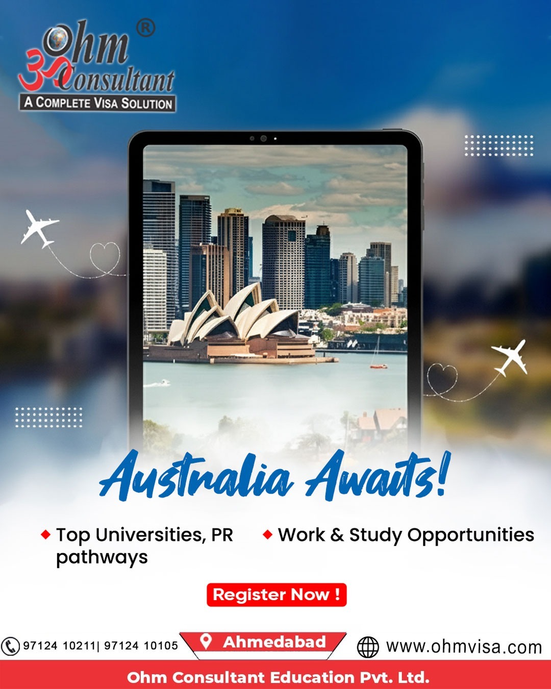 πβ¨ Dreaming of Australia? Your Journey Starts Here! π¦πΊ Ready to study, work, and build your future in one of the worldβs most dynamic countries? Join hands with Ohm Consultant Education Pvt. Ltd. and take the first step toward a successful global career! π Top Universities | Easy PR Pathways πΌ Work & Study Opportunities π Ahmedabad π 97124 10211 | 97124 10105 π₯ Register Now & Secure Your Seat! Hashtags: #AustraliaAwaits #StudyInAustralia #OhmConsultant #StudentVisa #PRPathway #WorkAndStudyAbroad #AustraliaEducation #AhmedabadStudents #OverseasEducation #FutureAbroad #StudyAbroadGoals #VisaExperts #Australia2025