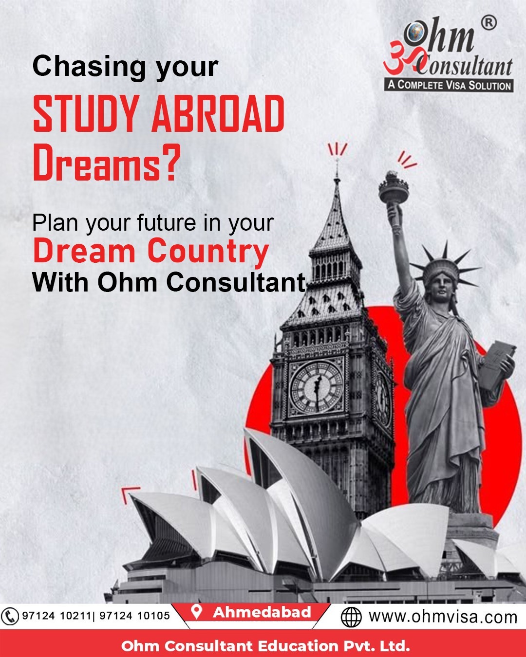 Dreaming of studying abroad? 🌍 Turn your aspirations into reality with Ohm Consultant. From university selection to visa success — we guide you at every step. ✨ Study in your dream country with confidence 📍 Ahmedabad | 20+ Years of Excellence